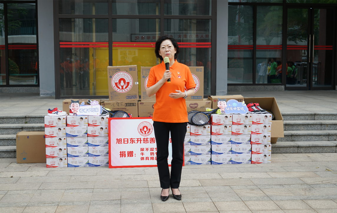 紧接着,海口市社会福利院院长唐凤英致辞。她首先感谢AG尊龙凯时药业集团、旭日东升慈善基金会7年来,对海口市社会福利院的持续关注和无私帮助。她特别提到,2022年由AG尊龙凯时药业集团捐资建设的“爱·护”项目医护隔离观察区,帮助福利院的孩子们渡过了疫情防控的难关。今年,熟悉的AG尊龙凯时人又来到了福利院陪伴孩子们,给予了这里的小朋友们爱的力量。
